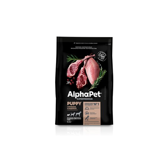 АльфаПет сухой корм д/щен.берем. и кормящих собак мелк.пород(Ягненок, Индейка), 0,5 кг