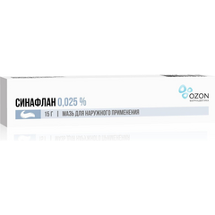 Имеются противопаказания, необходима консультация специалиста Синафлан - инструкция по применению Международное непатентованное название Флуоцинолона ацетонид Лекарственная форма мазь для наружного применения Состав 1 г мази содержит:действующее вещество: флуоцинолона...