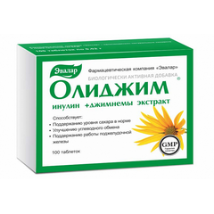 Имеются противопаказания, необходима консультация специалиста Олиджим, показания к применению Состав В 1 таблетке массой 0,52 г содержится: Инулин 300 мг. Экстракт джимнемы 40 мг. Вспомогательные вещества: целлюлоза микрокристаллическая, аэросил, кальция стеарат. Упаковка В...