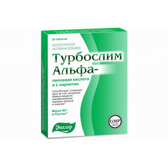 Инструкция по применению Таблетки Турбослим Альфалипоевая к-та и L-карнитин 0,55г Краткое описание Турбослим Альфа-липоевая кислота и L-карнитин повышает скорость обмена веществ в организме, что является обязательным условием похудения. Фармакологическое действие Способствует: эффективному...