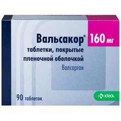 Состав, форма выпуска и упаковка Вальсакор, 160 мг, таблетки, покрытые пленочной оболочкой Каждая таблетка содержит 160 мг валсартана. Прочими ингредиентами (вспомогательными веществами) являются: лактозы моногидрат, целлюлоза микрокристаллическая, повидон К-25, кроскармеллоза натрия,...