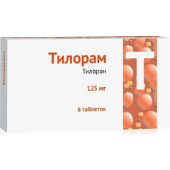 Тилорам - инструкция по применению Торговое наименование препарата: Тилорам Международное непатентованное наименование: тилорон Лекарственная форма: таблетки, покрытые пленочной оболочкой Состав: Состав на одну таблетку: активное вещество: тилорона дигидрохлорид (тилорон)...