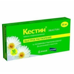 Кестин для рассасывания - инструкция по применению 1 таблетка лиофилизированная содержит: Активное вещество: эбастин 20,00 мг Вспомогательные вещества: Желатин 13,00 мг Маннитол 9,76 мг Аспартам 2, 00 мг Ароматизатор мятный 2,00 мг Описание Белые или почти белого цвета, круглые,...