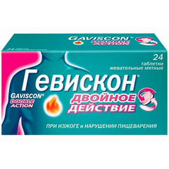 Имеются противопаказания, необходима консультация специалиста Гевискон Двойное Действие таблетки - инструкция по применению Торговое наименование препарата: Гевискон Двойное Действие Международное непатентованное наименование: кальция карбонат+натрия альгинат+натрия...