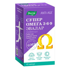 Описание Super Omega 3-6-9 - это биологически активная добавка, предназначенная для поддержания здоровья сердечно-сосудистой системы, улучшения обмена веществ и повышения иммунитета. Капсулы содержат необходимые жирные кислоты Омега-3, Омега-6 и Омега-9, которые оказывают положительное...