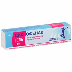 Имеются противопаказания, необходима консультация специалиста ДИКЛОФЕНАК 5% гель Описание: Фармакологическое действие - обезболивающее, противовоспалительное. Состав: Активное вещество:диклофенакнатрия. Показания к применению: Заболевания опорно-двигательного аппарата:...