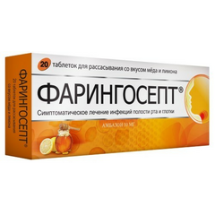 Фарингосепт с различными вкусами - инструкция по применению Регистрационный номер: П N015365/01 Торговое наименование препарата: Фарингосепт Международное непатентованное наименование: Амбазон Лекарственная форма: Таблетки для рассасывания со вкусом лимона. Таблетки для...