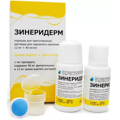 Описание Зинеридерм 12мг+40мг/мл порошок для приготовления раствора для наружного применения 30мл Порошок для приготовления раствора для наружного применения белый, кристаллический; растворитель - бесцветный, прозрачный. Состав Цинка ацетат+Эритромицин Показания Лечение угревой сыпи....