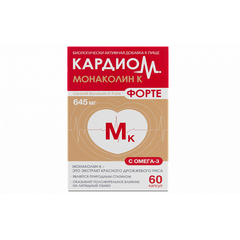 Состав и описание Активное вещество: Рыбий жир, экстракт красного дрожжевого риса. Содержание активных веществ в 1 капсуле: Эйкозапентаеновая кислота (ЭПК) 72 мг; Докозагексаеновая кислота (ДГК) 48 мг; Вспомогательные вещества: Целлюлоза микрокристаллическая,...