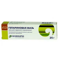 Действующее вещество: Гепарин натрия + Бензокаин + Бензилникотинат* (Heparin sodium + Benzocaine + Benzylnicotinate*) Фармакологическая группа Антикоагулянты в комбинациях Состав и форма выпуска Мазь 100 г гепарин 10000 ЕД анестезин 4 г бензилникотинат 0,08 г...