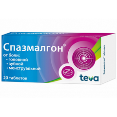 Лекарственная форма: таблетки Состав: каждая таблетка содержит: активные вещества: метамизол натрия - 500 мг, питофенона гидрохлорид - 5,0 мг, фенпивериния бромид - 0,1 мг; вспомогательные вещества: лактозы моногидрат 10 мг, пшеничный крахмал 85,9 мг, тальк (магния гидросиликат) 6 мг,...