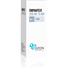 Инструкция по применению Пирантел 250мг/5мл 15мл суспензия для приема внутрь Состав, форма выпуска и упаковка Суспензия - 5 мл: пирантел (в форме эмбоната) 250 мг. 15 мл - флаконы темного стекла (1) в комплекте с мерным колпачком - пачки картонные.   Фармакотерапевтическая группа...