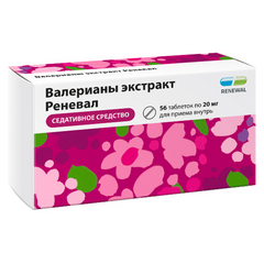 Валериана экстракт Реневал - лекарственный препарат на основе экстракта корневищ с корнями валерианы лекарственной. Он содержит 20 мг действующего вещества в каждой покрытой пленочной оболочкой таблетке. Препарат используется для уменьшения беспокойства, раздражительности, тревожности,...