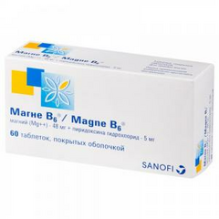 АТХ A11JB Витамины в комбинации с минеральными веществами Фармакологическая группа Магния препарат [Макро- и микроэлементы в комбинациях] Нозологическая классификация (МКБ-10) список кодов МКБ-10 Состав Таблетки, покрытые оболочкой 1 табл. ядро   активные...