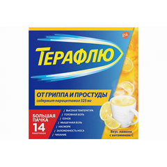 Описание ТераФлю Лимон — комбинированный препарат от 7 симптомов гриппа и простуды. ТераФлю помогает облегчать симптомы гриппа и простуды, такие как повышенная температура, озноб, ломота в теле, головная боль, боль в мышцах, насморк, заложенность носа, чихание. Продукт начинает действовать...