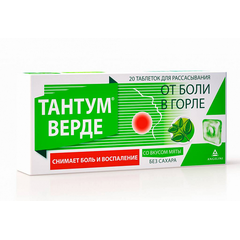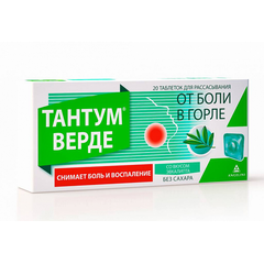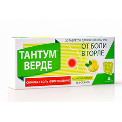 Тантум Верде таблетки для рассас. со вкусом лимона 3мг 20 шт. Краткое описание симптоматическая терапия болевого синдрома воспалительных заболеваний полости рта и ЛОР-органов (различной этиологии) Фармакологическое действие Противовоспалительное и обезболивающее местное средство. Показания...