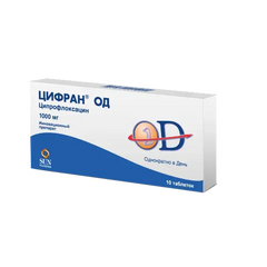 Международное непатентованное название: ципрофлоксацин Лекарственная форма: таблетки пролонгированного действия, покрытые пленочной оболочкой. Состав: каждая таблетка пролонгированного действия, покрытая пленочной оболочкой содержит: Цифран ОД 500 мг Активное вещество:...