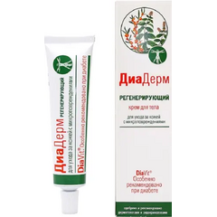 Крем ДиаДерм Регенерирующий ускоряет восстановление кожи в местах её микроповреждений: инъекции инсулина, прокол кожи на кончиках пальцев для забора крови на анализ, трещинки, ссадинки, царапины. Специальная основа крема «запечатывает» ранку, препятствуя проникновению инфекции, активные...