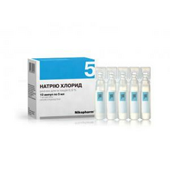 Действующее вещество Натрия хлорид (Natrii chloridum) Фармакологическая группа Регуляторы водно-электролитного баланса и КЩС Состав и форма выпуска 1 мл водного изотонического раствора содержит натрия хлорида 9 мг; в ампулах по 5 и 10 мл, в картонной коробке 10 шт....