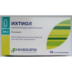 Действующее вещество: Ихтаммол (Ichthammol) Фармакологическая группа Противовоспалительное средство для местного применения [Антисептики и дезинфицирующие средства] Состав и форма выпуска Ихтиол Суппозитории для ректального применения 1 супп. ихтиол 200 мг...