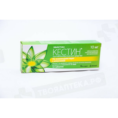 Действующее вещество Эбастин* (Ebastinum) Фармакологическая группа H1-антигистаминные средства Нозологическая классификация (МКБ-10) J30.1 Аллергический ринит, вызванный пыльцой растений J30.2 Другие сезонные аллергические риниты J30.3 Другие аллергические риниты L50 Крапивница...