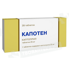 Действующее вещество:   Каптоприл* (Captopril*) Фармакологическая группа Ингибиторы АПФ Нозологическая классификация (МКБ-10) I10 Эссенциальная (первичная) гипертензия I15 Вторичная гипертензия I25.2 Перенесенный в прошлом инфаркт миокарда I50.0 Застойная сердечная...