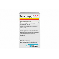 Действующее вещество:   Тиоктовая кислота (Acidum thiocticum) Фармакологические группы Витамины и витаминоподобные средства Другие гиполипидемические средства Нозологическая классификация (МКБ-10) G63.2 Диабетическая полинейропатия (E10-E14+ с общим четвертым знаком .4) Состав...