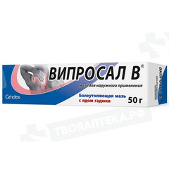 Действующее вещество: Камфора + Салициловая кислота + Скипидар живичный + Яд гадюки (Camphor + Salicylic acid + Terebinthinae oleum + Adder venom) Фармакологическая группа Местнораздражающие средства в комбинациях Условия хранения препарата Випросал B® мазь В прохладном месте....