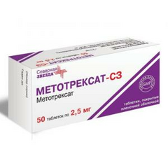 Действующее вещество Метотрексат* (Methotrexatum) Фармакологическая группа Антиметаболиты Состав и форма выпуска 1 таблетка, покрытая оболочкой, содержит метотрексата 2,5 мг; во флаконах по 100 шт., в картонной коробке 1 шт. 1 мл раствора для инъекций — 25 мг; во флаконах по 2,...