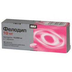 Действующее вещество:   Фелодипин* (Felodipine*) Фармакологическая группа Блокатор «медленных» кальциевых каналов [Блокаторы кальциевых каналов] Нозологическая классификация (МКБ-10) I10 Эссенциальная (первичная) гипертензия I15 Вторичная гипертензия I20 Стенокардия [грудная...