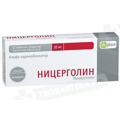 Действующее вещество Ницерголин* (Nicergolinum) Фармакологические группы Альфа-адреноблокаторы Корректоры нарушений мозгового кровообращения
