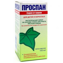 Действующее вещество: Плюща листьев экстракт (Hederae helicis foliorum extract) Фармакологическая группа Секретолитики и стимуляторы моторной функции дыхательных путей Состав и форма выпуска 100 мл капель содержат сухого экстракта листьев плюща 2 г, а также анисовое масло, масло...