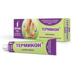 Лекарственная форма: крем для наружного применения Состав 1 г крема содержит: Активное вещество: тербинафина гидрохлорида 10,0 мг Вспомогательные вещества : спирт цетиловый, спирт стеариловый или спирт цетостеариловый 80.0 мг, спирт бензиловый 10.0 мг, цетилпальмитат 20,0 мг, полисорбат...