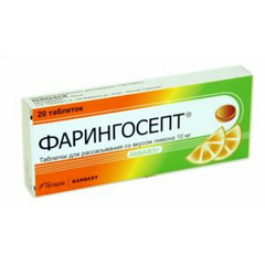 Действующее вещество: Амбазон* (Ambazone*) Фармакологическая группа Антисептики и дезинфицирующие средства Нозологическая классификация (МКБ-10) J02.9 Острый фарингит неуточненный J03.9 Острый тонзиллит неуточненный (ангина агранулоцитарная) J04 Острый ларингит и трахеит K05.0...