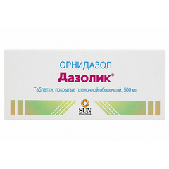 Имеются противопаказания, необходима консультация специалиста Дазолик Торговое название препарата: Дазолик Международное непатентованное название (МНН): Орнидазол Лекарственная форма: таблетки, покрытые оболочкой. Состав: Каждая таблетка, покрытая оболочкой, содержит:...