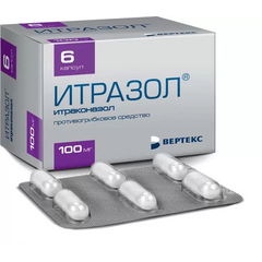 Имеются противопаказания, необходима консультация специалиста Итразол - инструкция по применению Торговое название препарата: Итразол Международное непатентованное название (MHH): итраконазол Лекарственная форма: капсулы Состав: итраконазола пеллеты 464 мг Активное...