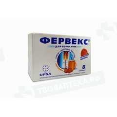 Порошок для приготовления раствора для приема внутрь (малиновый с сахаром)от светло-розового до светло-бежевого цвета; допускаются вкрапления темно-розового цвета; приготовленный раствор розового цвета, слегка опалесцирующий. 1 пак. парацетамол 500 мг фенирамина малеат 25 мг аскорбиновая...