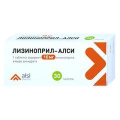Состав Одна таблетка содержит: активное вещество: лизиноприла дигидрат — 10,9 мг , что соответствует 10 мг лизиноприла; вспомогательные вещества : лактозы моногидрат (сахар молочный) — 20,0 мг, целлюлоза микрокристаллическая — 43,8 мг, крахмал прежелатинизированный (крахмал...