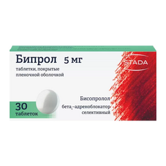 Имеются противопаказания, необходима консультация специалиста Бипрол 5 мг - инструкция по применению Международное непатентованное название бисопролол Лекарственная форма таблетки, покрытые пленочной оболочкой Состав Действующее вещество бисопролола фумарат 5,000 мг/10,000...