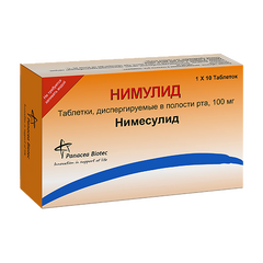 Состав и описание Активное вещество: 1 таблетка содержит: нимесулид 100,00 мг Вспомогательные вещества: Маннитол 187,85 мг, карбоксиметилкрахмал натрия 15,00 мг, аспартам 7,00 мг, магния стеарат 5,00 мг, кремния диоксид коллоидный 5,00 мг, кроскармеллоза натрия 3,00 мг, ароматизатор...