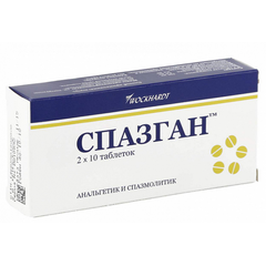 Лекарственная форма: таблетки Состав Каждая таблетка содержит: активные вещества: метамизол натрия 500 мг, питофенона гидрохлорид 5,0 мг, фенпивериния бромид 0,1 мг; вспомогательные вещества: лактоза 164,000 мг, магния стеарат 5,000 мг, кремния диоксид коллоидный 0,100 мг. Описание...
