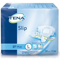 ТЕНА Слип Плюс  размер L (до   150 см ), Подгузники для взрослых дышащие, 30 шт. Описание товара Дышащие подгузники для взрослых ТЕНА Слип (TENA Slip) с технологией ConfioAir созданы специально для малоподвижных и лежачих больных. Они обеспечивают надежную защиту при...