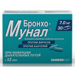 Действующее вещество:   Лизаты бактерий [Haemophilus influenzae + Streptococcus pneumoniae + Streptococcus viridans + Streptococcus pyogenes + Klebsiella pneumoniae + Klebsiella ozaenae + Staphylococcus aureus + Moraxella catarrhalis] (Bacterial lysates [Haemophilus influenzae +...