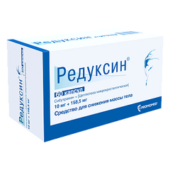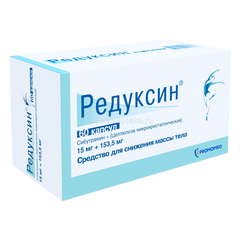 Редуксин - инструкция по применению Торговое название: Редуксин Международное непатентованное название: Сибутрамин Химическое название: N-[1-{1-(4-Хлорфенил)-циклобутил] 3-метилбутил]-N,N-диметил-аминогидрохлорид моногидрат Состав: Активное вещество: Сибутрамина...