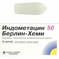 Описание Индометацин 50 Берлин-Хеми, 50 мг, суппозитории ректальные. Состав Действующее вещество: индометацин. Каждый суппозиторий ректальный содержит 50,0 мг индометацина. Показания Индометацин 50 Берлин-Хеми показан к применению у взрослых и детей старше 15 лет. – Острые и хронические...