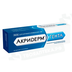 Имеются противопаказания, необходима консультация специалиста Акридерм Гента мазь Торговое название препарата: Акридерм ГЕНТА Международное непатентованное название или группировочное название: Бетаметазон + Гентамицин Лекарственная форма: мазь для наружного применения...