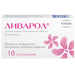 Имеются противопаказания, необходима консультация специалиста Ливарол - инструкция по применению Действующее вещество : Кетоконазол Лекарственная форма : суппозитории вагинальные Состав : 1 суппозиторий вагинальный содержит: активное вещество: кетоконазол 400 мг;...