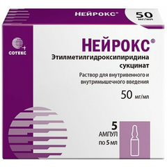 Имеются противопаказания, необходима консультация специалиста Нейрокс - инструкция по применению Торговое название: Нейрокс МНН или группировочное название: этилметилгидроксипиридина сукцинат Лекарственная форма: раствор для внутривенного и внутримышечного введения...