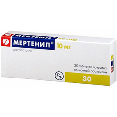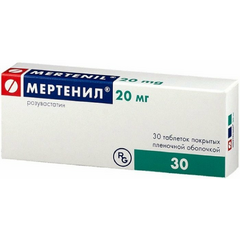 Мертенил - инструкция по применению Торговое название: Мертенил Международное непатентованное название: розувастатин Лекарственная форма: таблетки, покрытые пленочной оболочкой Состав на 1 таблетку: Действующее вещество: розувастатин кальция 5,2/10,4/20,8/41,6 мг...