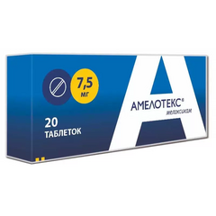 Амелотекс таблетки - инструкция по применению Торговое название: Амелотекс Международное непатентованное название: Мелоксикам Лекарственная форма: таблетки Состав 1 таблетка содержит в качестве активного вещества мелоксикам - 7,5 мг или 15 мг. Вспомогательные вещества:...